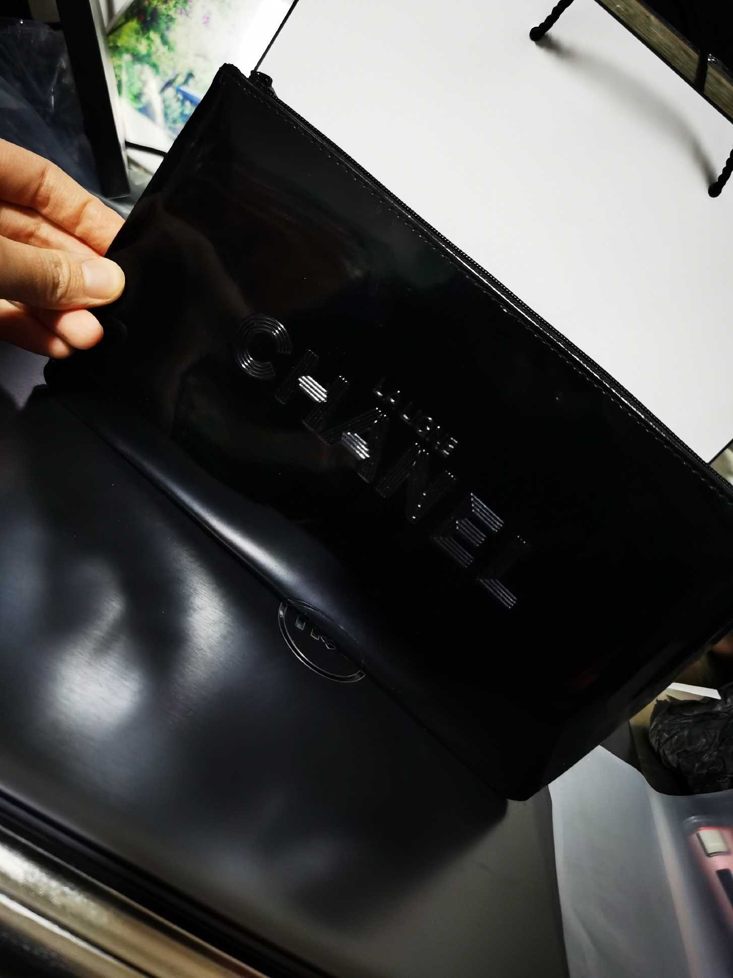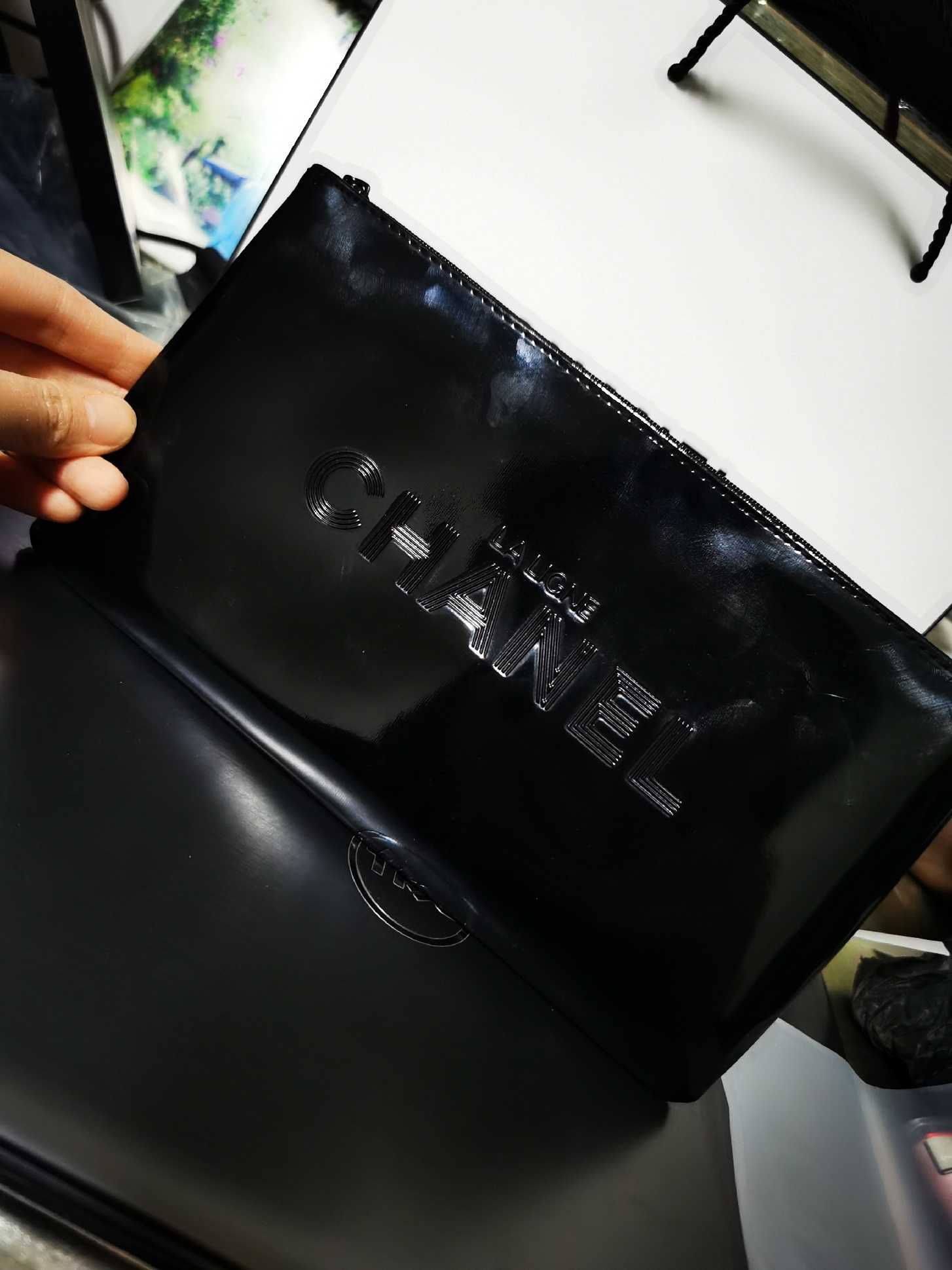 Packing included : 1pcs x Chanel Large Black Patent Makeup Pouch bag in Box 2018