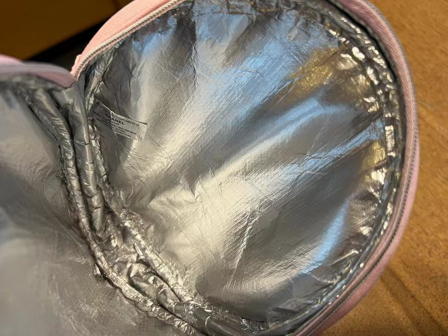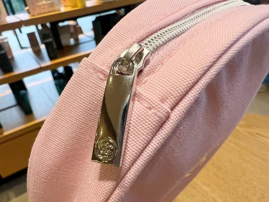 Chanel light pink canvas ROUND Makeup Pouch bag 2022