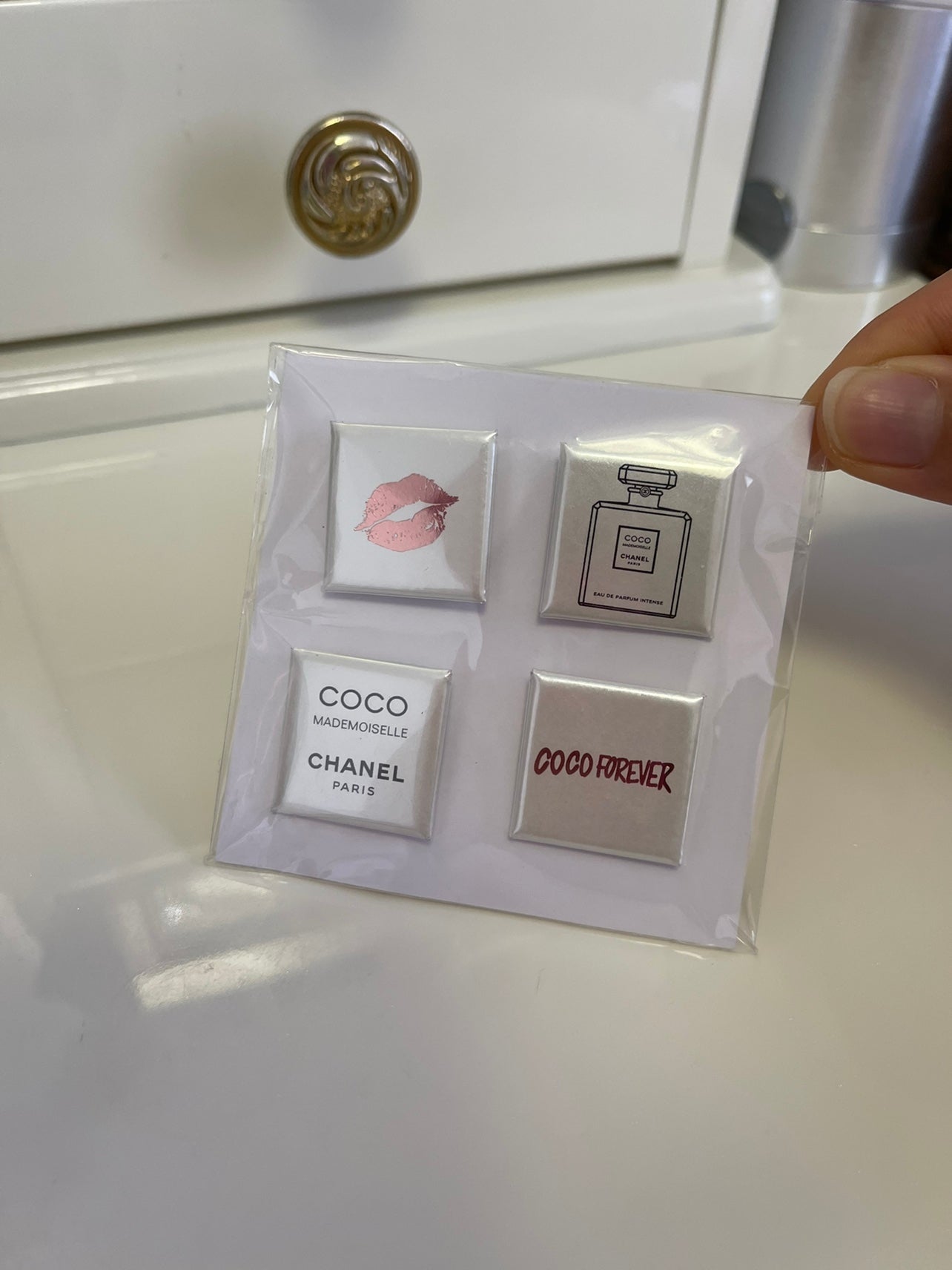 Packing included : 1pcs  x    Coco Mademoiselle Mini Metal Pins Set of 4pcs 2019 VIP GIFT